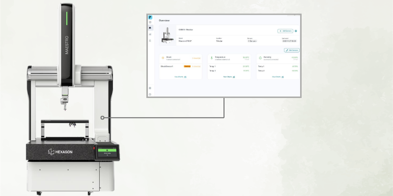 Para una CMM ubicada cerca de producción, los factores ambientales dejan de ser un elemento menor y se vuelven variables críticas. Aplicaciones como PULSE de Hexagon indican que monitorean la temperatura, humedad, vibración, colisiones y deflexión del palpador, precisamente porque estas condiciones pueden impactar directamente los resultados.
